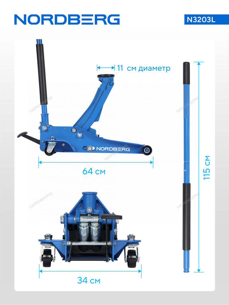NORDBERG N3203L — подкатной гидравлический домкрат с механическим стопором