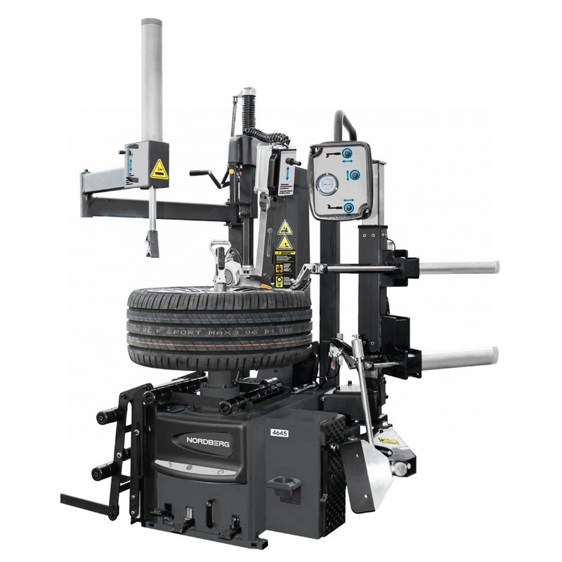 NORDBERG 4645(G) — предназначен для монтажа, демонтажа и подкачки шин легковых автомобилей и легких грузовиков. Работает с дисками 13–28 дюймов, а также со всеми типами шин: стандартными, низкопрофильными, Run-Flat, камерными и бескамерными.